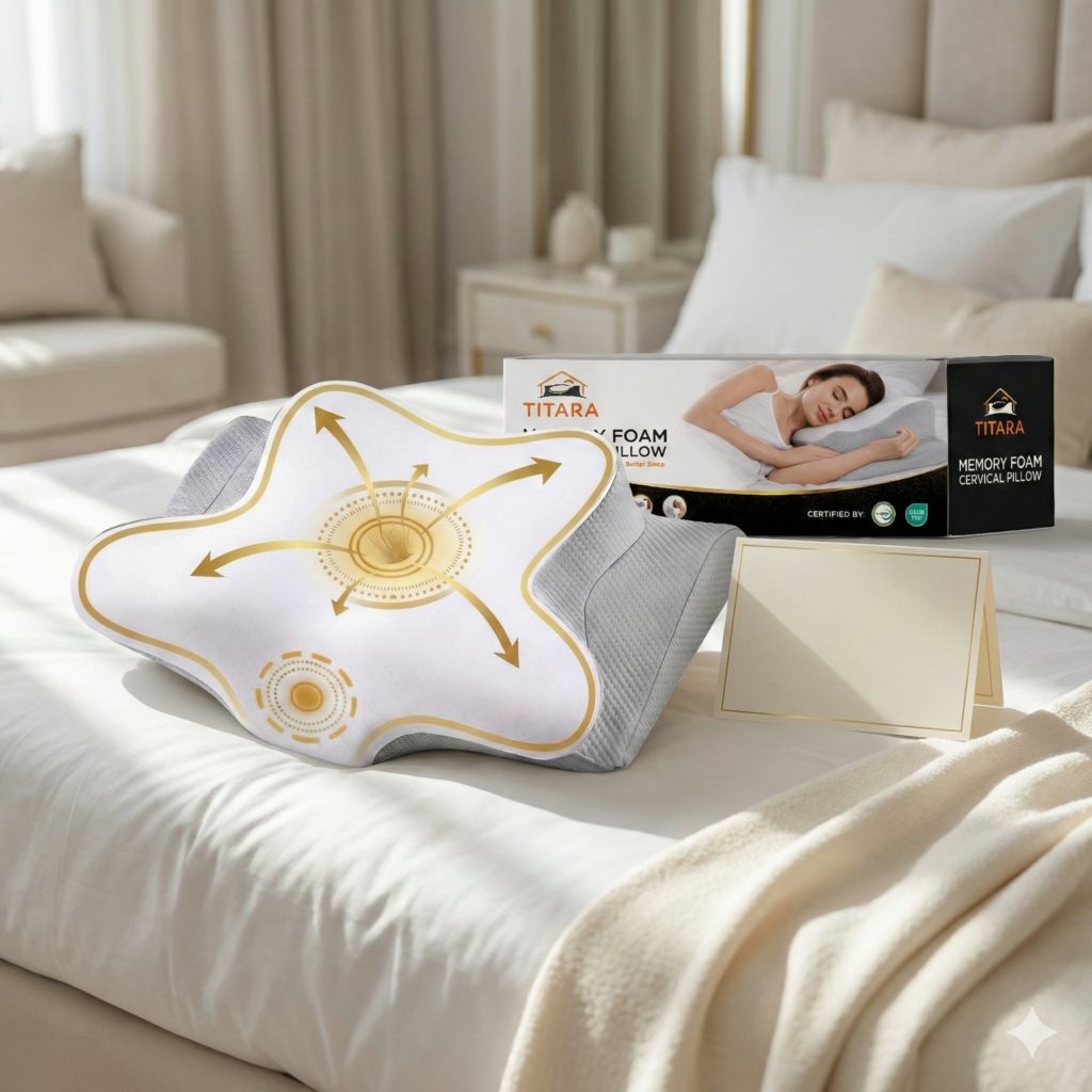 The TITARA Memory Foam Cervical Pillow arrives in premium packaging designed to reflect the quality inside. With a clean presentation and thoughtful details, it makes an ideal gift for loved ones or a refined addition to your own home.